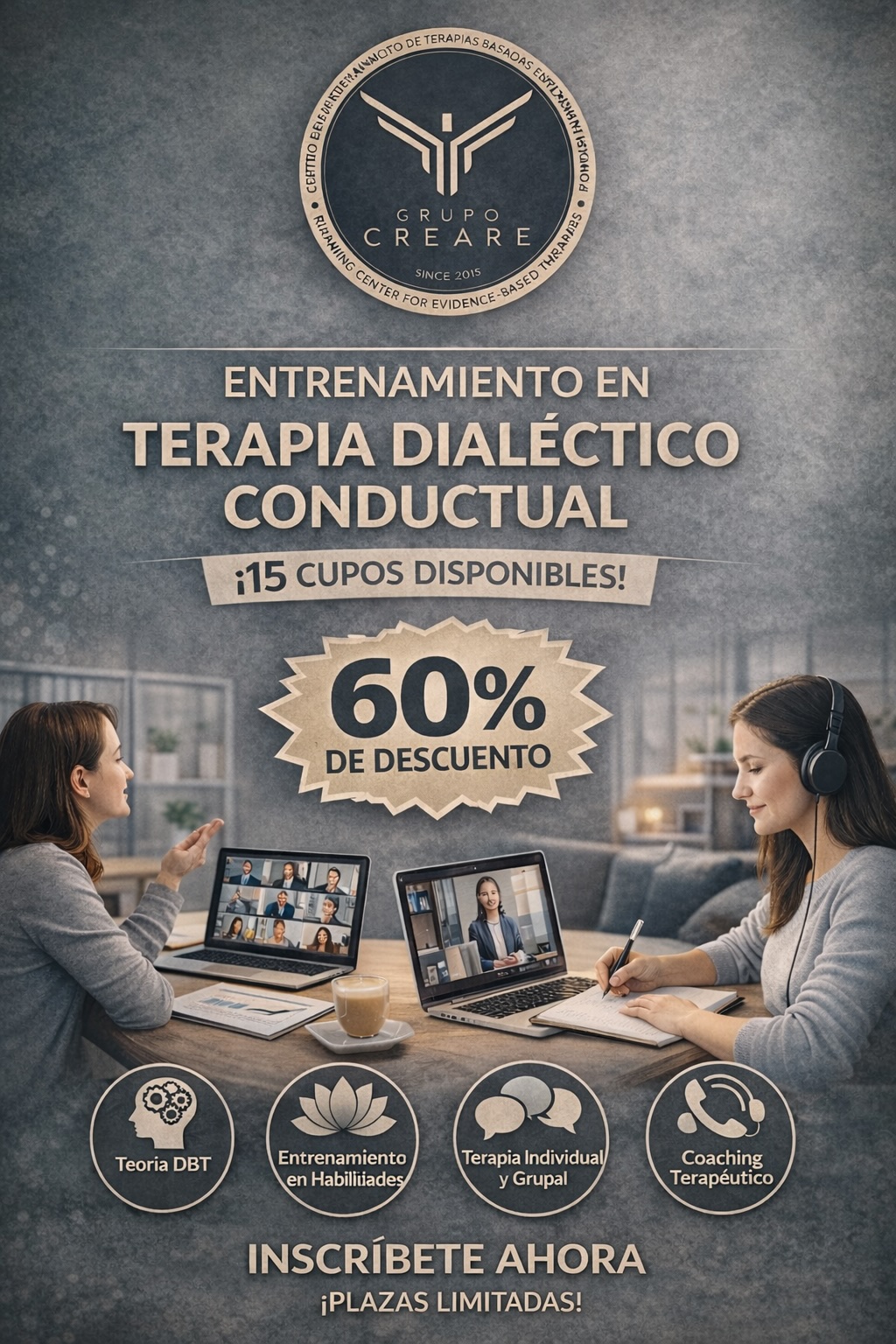 El Entrenamiento Elemental en Terapia Dialéctico Conductual (DBT) es un programa formativo diseñado por Grupo Creare para proporcionar a los profesionales de la salud mental una comprensión sólida de los principios fundamentales, bases teóricas y estrategias de intervención de la DBT. Este entrenamiento se fundamenta en el modelo desarrollado por Marsha Linehan (1993, 2015), abordando su estructura modular, las estrategias terapéuticas centrales y la evidencia empírica que respalda su efectividad en el tratamiento de trastornos emocionales complejos.